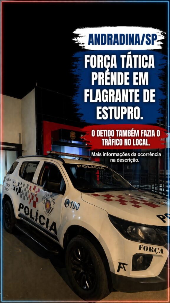 Na noite de 20 de abril de 2026, por volta das 21h, uma equipe da Força Tática do 28º Batalhão de Polícia Militar do Interior (28º BPM/I) realizou a prisão em flagrante de um indivíduo de 19 anos pelos crimes de estupro e tráfico de entorpecentes, no município de Andradina.Durante patrulhamento no bairro Benfica, os policiais receberam denúncia acerca da prática de tráfico de drogas em uma residência da região. Diante das informações, foi estabelecido ponto de observação, sendo constatada movimentação compatível com o comércio ilícito de entorpecentes.Um indivíduo de 26 anos foi abordado após sair do imóvel denunciado, sendo localizada em sua posse uma porção de maconha. Questionado, informou ter adquirido o entorpecente no referido local, corroborando a denúncia inicial.Na sequência, os policiais procederam à abordagem do suspeito indicado. Durante vistoria no interior da residência, foram apreendidos R$ 67,00 em espécie, uma balança de precisão e diversas porções de drogas já fracionadas, incluindo cocaína, crack e maconha. No local, também foi encontrada uma adolescente de 17 anos, a qual relatou ter sido vítima de estupro praticado pelo indivíduo detido. Segundo o depoimento, a vítima havia se dirigido à residência para dialogar com o suspeito, ocasião em que, após discussão, foi constrangida mediante violência. A ação teria sido interrompida com a chegada da equipe policial.Diante dos fatos, foi dada voz de prisão em flagrante ao suspeito, que foi conduzido ao Centro de Polícia Judiciária (CPJ), permanecendo à disposição da Justiça.O indivíduo abordado inicialmente foi autuado por porte de entorpecentes e liberado após os procedimentos legais.A vítima foi acompanhada por sua genitora para atendimento médico e demais providências cabíveis.A atuação da Força Tática reforça a importância do policiamento ostensivo no enfrentamento ao tráfico de drogas e na repressão a crimes graves, contribuindo para a segurança pública.