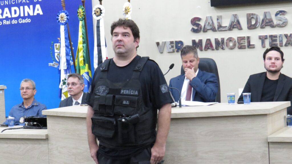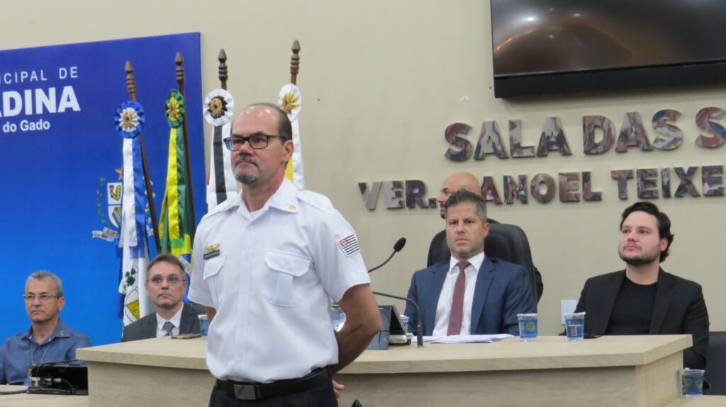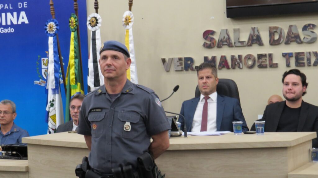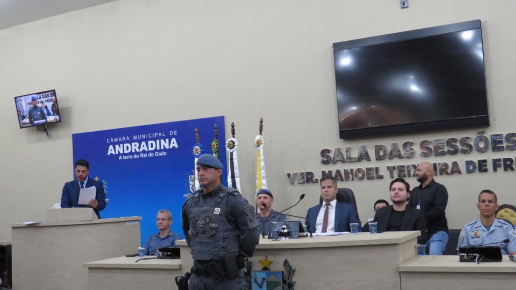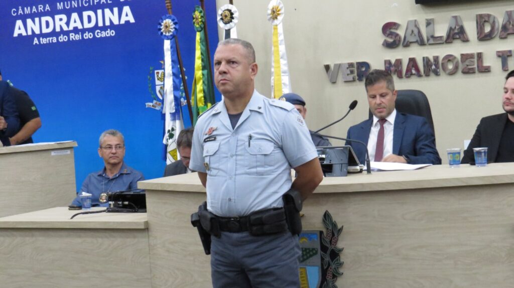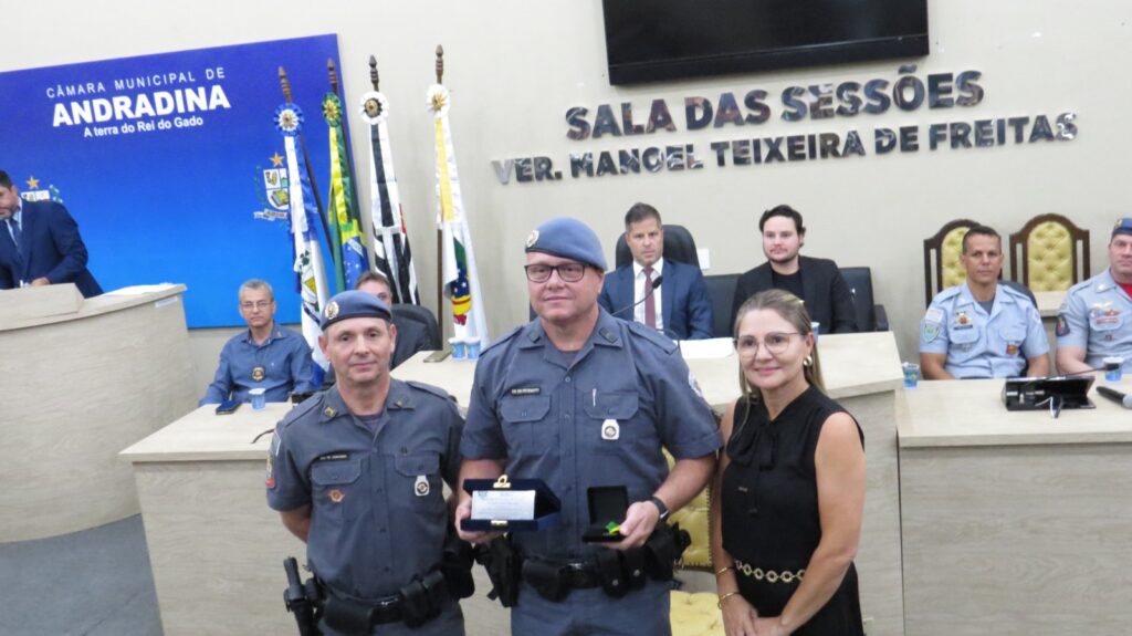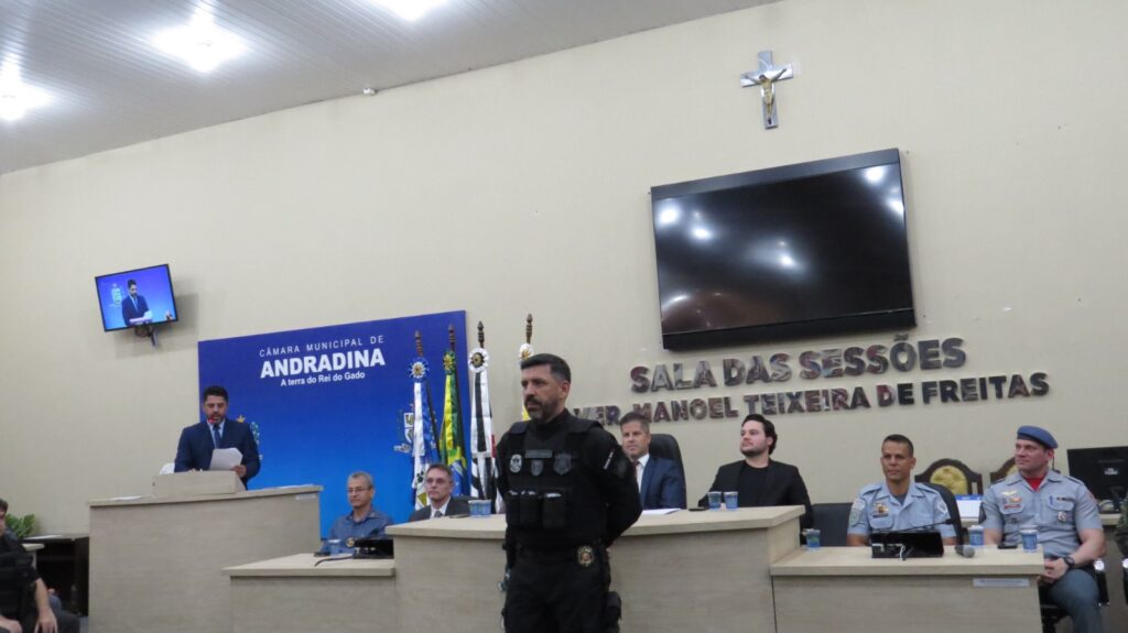 A Câmara Municipal de Andradina realizou a Sessão Solene de entrega da Medalha Tiradentes, reunindo diversas autoridades civis e militares em uma noite marcada por reconhecimento e valorização das forças de segurança. A mesa de honra foi composta por importantes representantes das instituições da região, entre eles o Dr. Carlos Sergio Franco Falsiroli, Delegacia Seccional de Polícia de Andradina; a Dra. Gisele Martins Moraes, responsável pela Polícia Técnico-Científica; o Major PM Marcos Antonio Romansini, comandante interino do 28º BPM/I; o Capitão PM Ilton Dias de Freitas Júnior, comandante da 1ª Companhia do 28º BPM/I de Andradina; o Capitão PM Diogo Araújo, comandante da Companhia de Força Tática de Andradina; o 1º Tenente PM Ricardo Donato Chaves, comandante do 2º BPRv – 4ª Companhia de Andradina; o 1º Tenente PM Paulo Eduardo Belina, comandante interino do Subgrupamento do Corpo de Bombeiros da Regional de Andradina; o 1º Tenente PM Luiz Flávio Dias, comandante do 2º Pelotão da Polícia Militar Ambiental de Andradina; e Jair Silva da Costa, diretor geral da Penitenciária de Andradina.