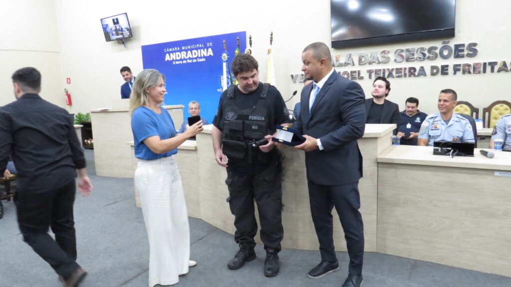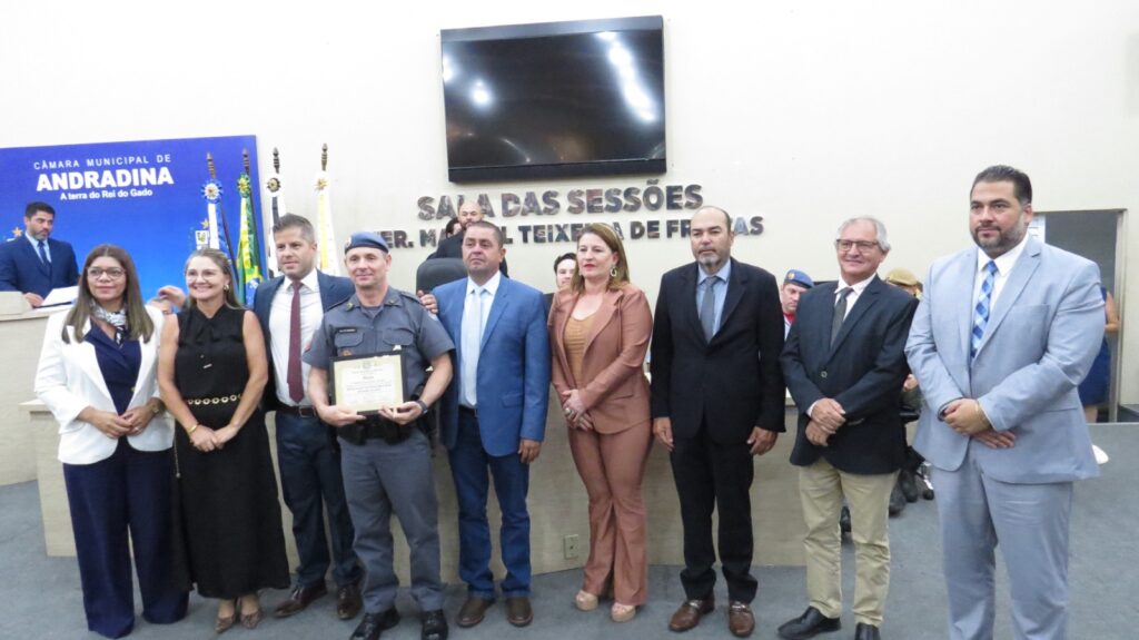 Um dos destaques desta edição foi a inclusão, pela primeira vez, de policiais penais entre os homenageados, ampliando o reconhecimento a essa importante categoria. Na ocasião, também foram entregues moções de aplausos ao Cabo PM Robson Novaes, ao Capelão Militar Pastor Edmur José e ao 28º BPM/I, em reconhecimento pelos 40 anos de relevantes serviços prestados à comunidade andradinense.